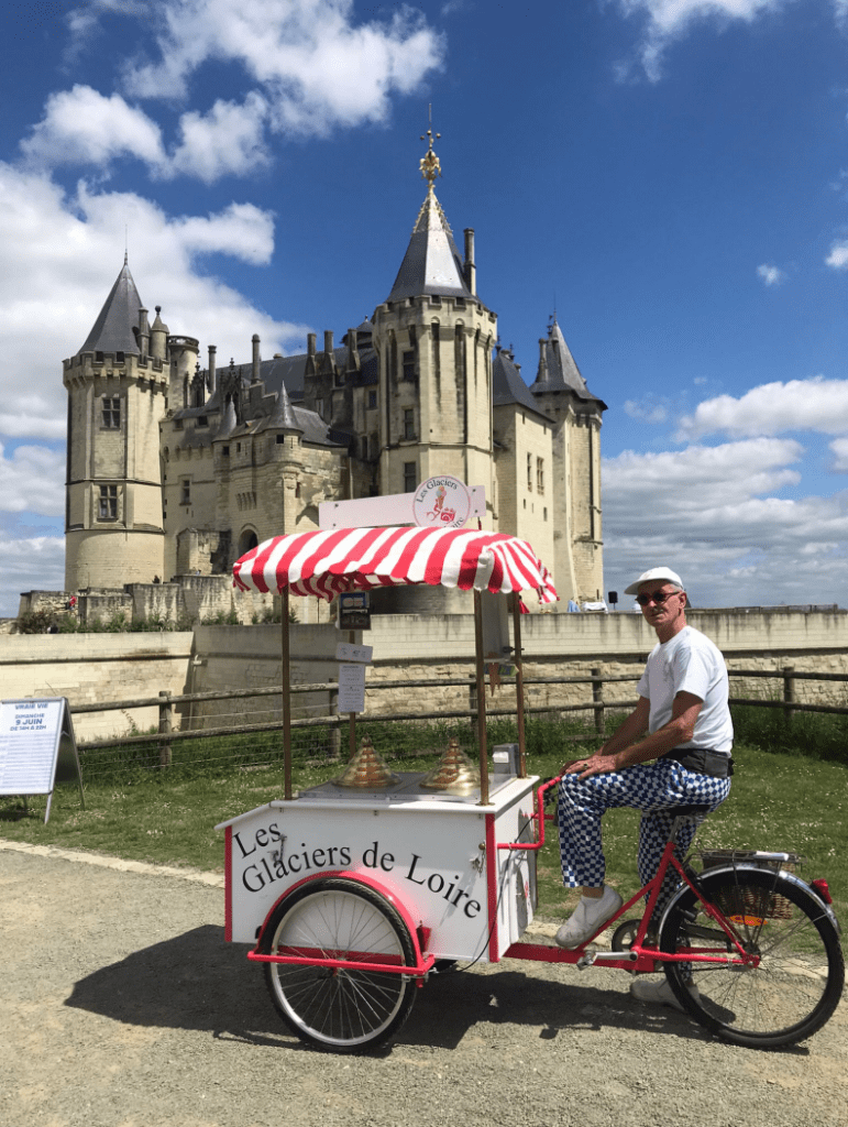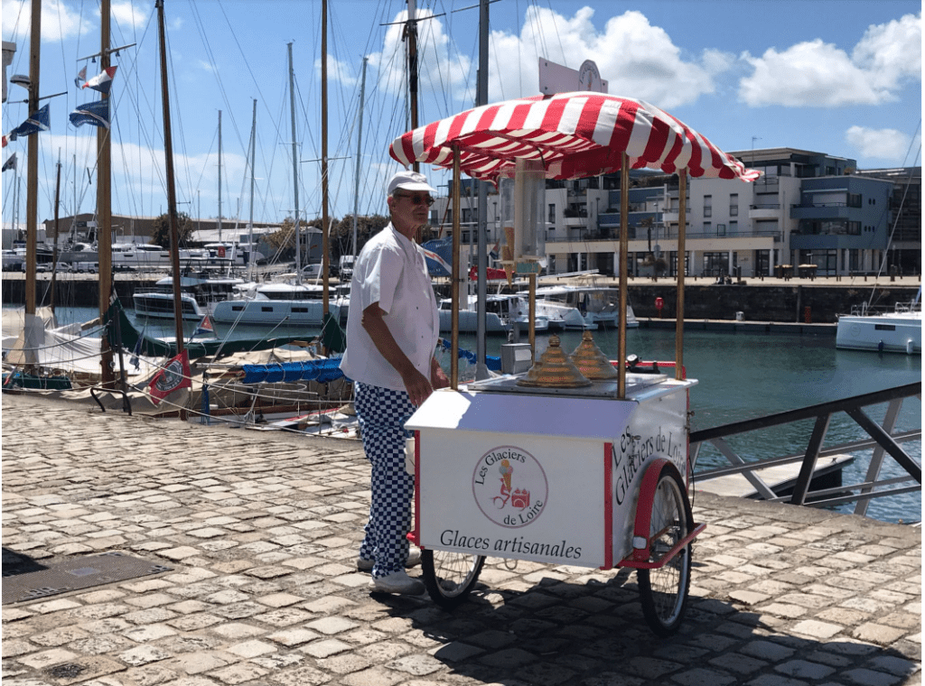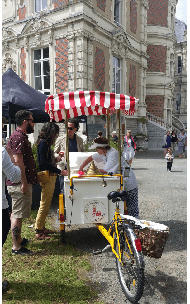 Nous vous proposons des glaces artisanales en cornet traditionnel présenté en triporteur.